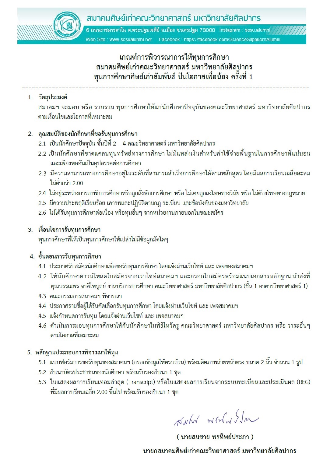 สมาคมศิษย์เก่าคณะวิทยาศาสตร์ มหาวิทยาลัยศิลปากร ขอเชิญชวนน้องๆ วิดยาศิลปากรศิษย์ปัจจุบัน สมัครรับทุน "ทุนการศึกษาศิษย์เก่าสัมพันธ์ปันโอกาสเพื่อน้อง ครั้งที่ 1/66"